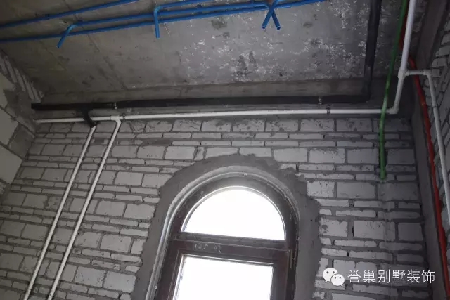所有管線整齊排列在天花上,用專用管碼吊在天花上,所有墻面線管豎直向下。