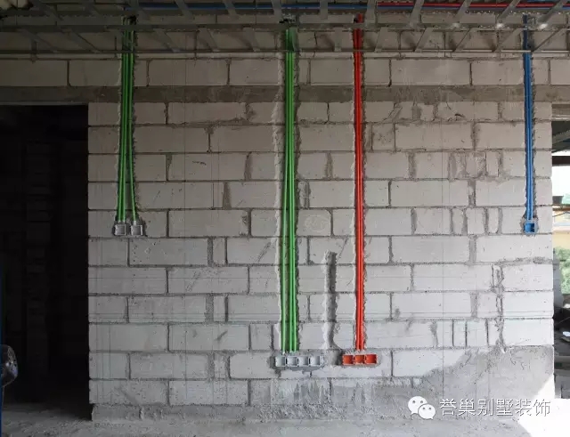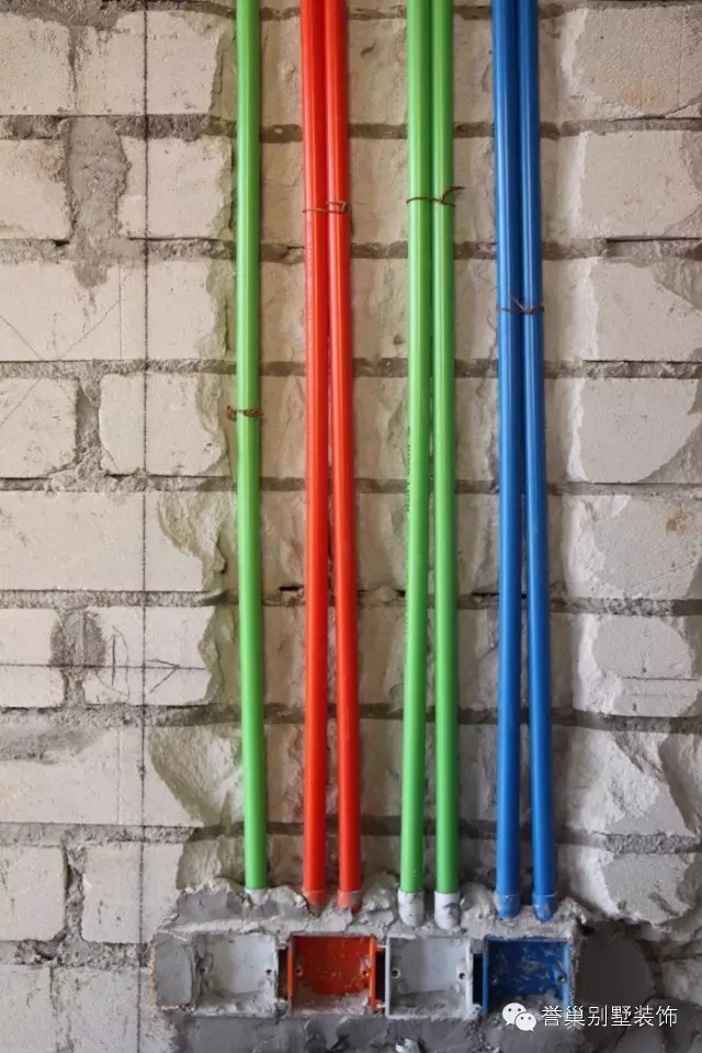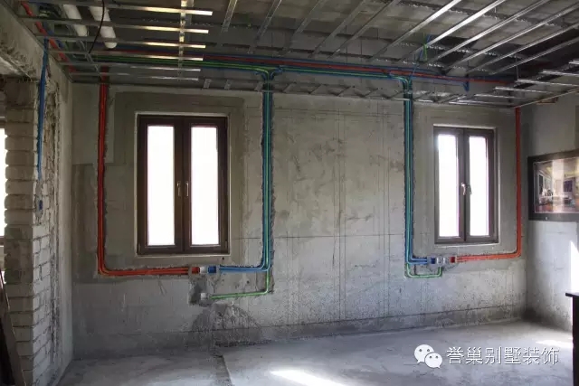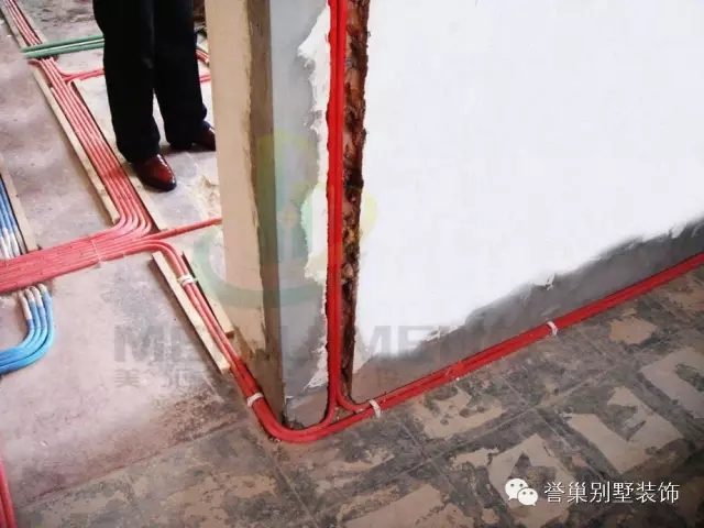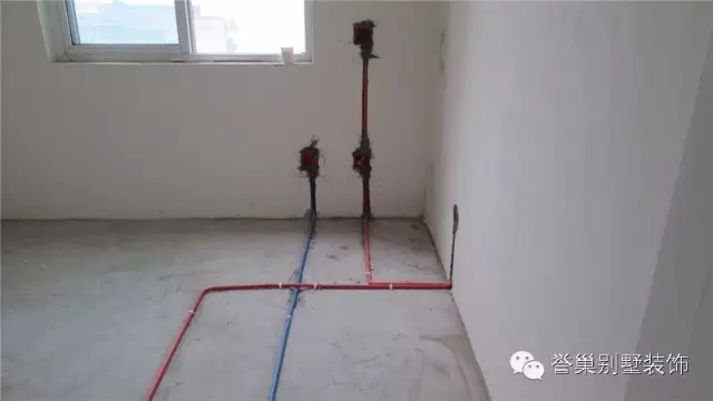 線管和水管在地面和墻面天花橫平豎直安裝并列整齊。